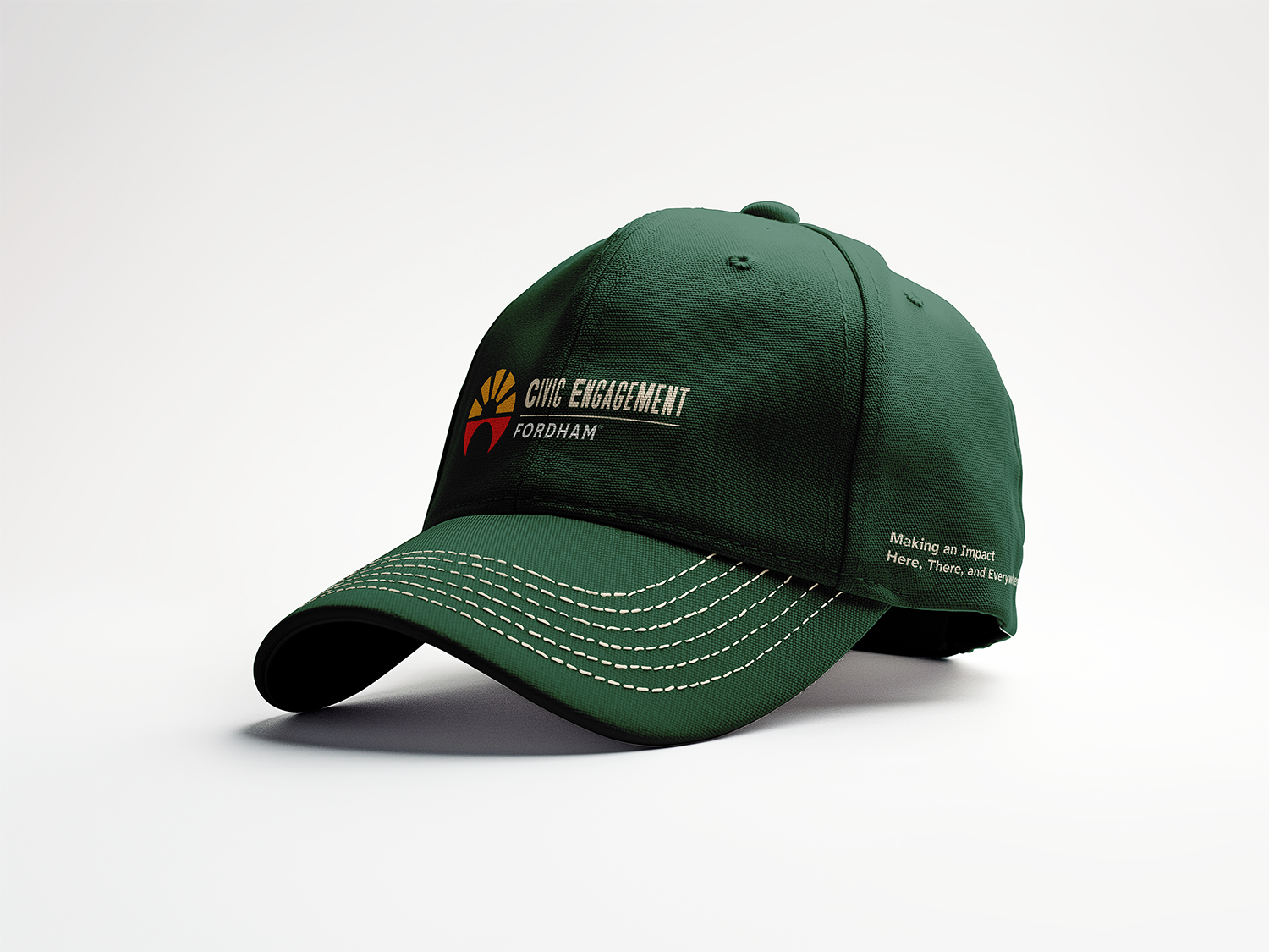 The logotype is set in VTC Bayard for its bold, highly recognizable presence, with Fordham University’s logotype placed beneath at a smaller scale in Fordham maroon to maintain institutional alignment while allowing Civic Engagement to stand as a distinct, student-recognizable identity.
