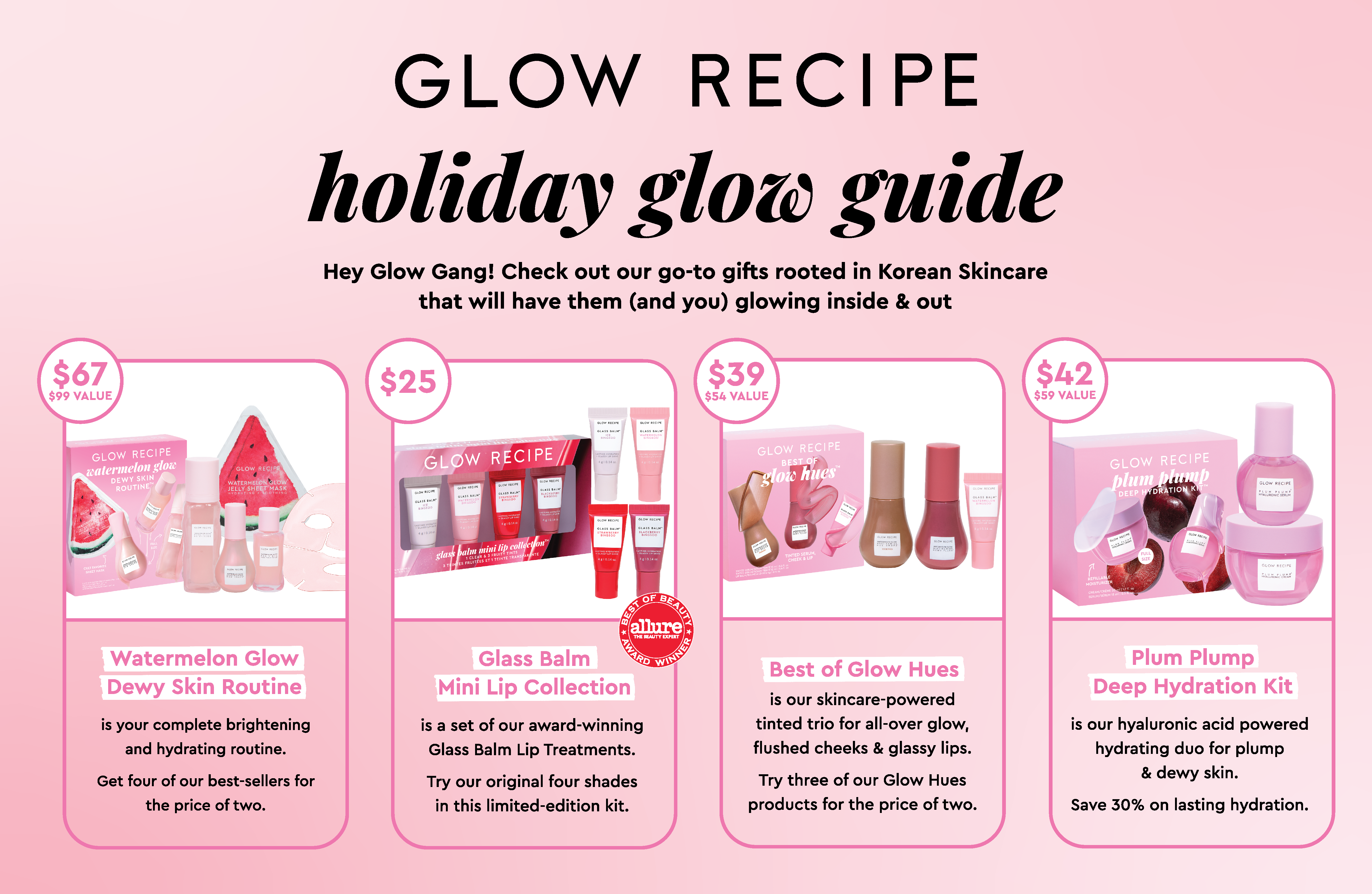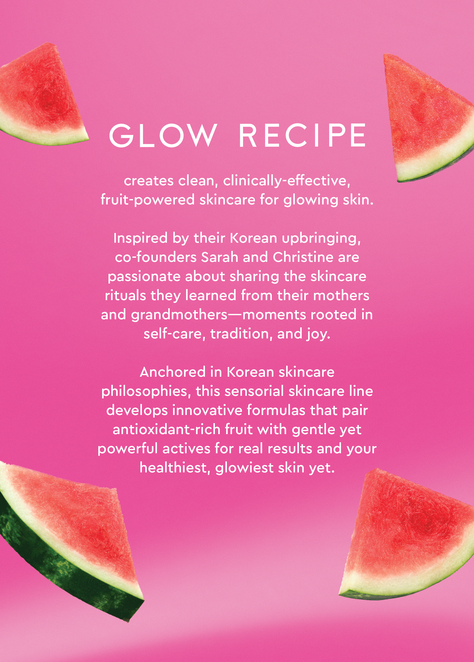 Glow Recipe is a skincare brand rooted in Korean skincare philosophies, known for pairing antioxidant-rich fruit with gentle yet powerful actives to deliver healthy, radiant skin for all.